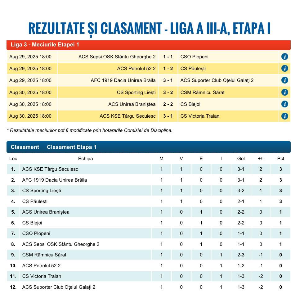 • Clasament fotbal Liga 3, Seria 2