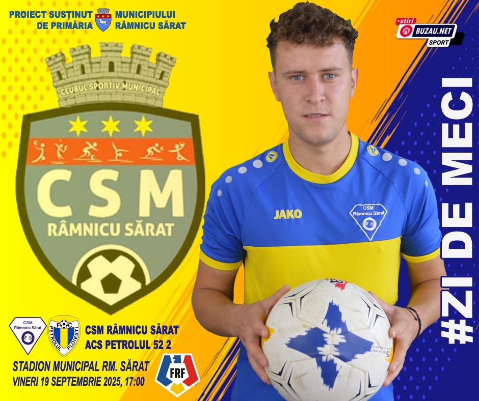 Mâine, de la ora 17.00 va așteptăm la stadion pentru jocul dintre *CSM Râmnicu Sărat* și *Petrolul 2 Ploiești!*