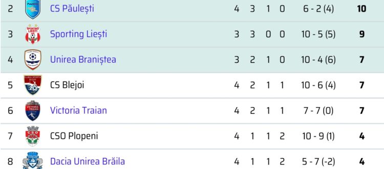 Clasamentul celei de-a doua serii a Ligii a III-a, după primele 4 etape disputate