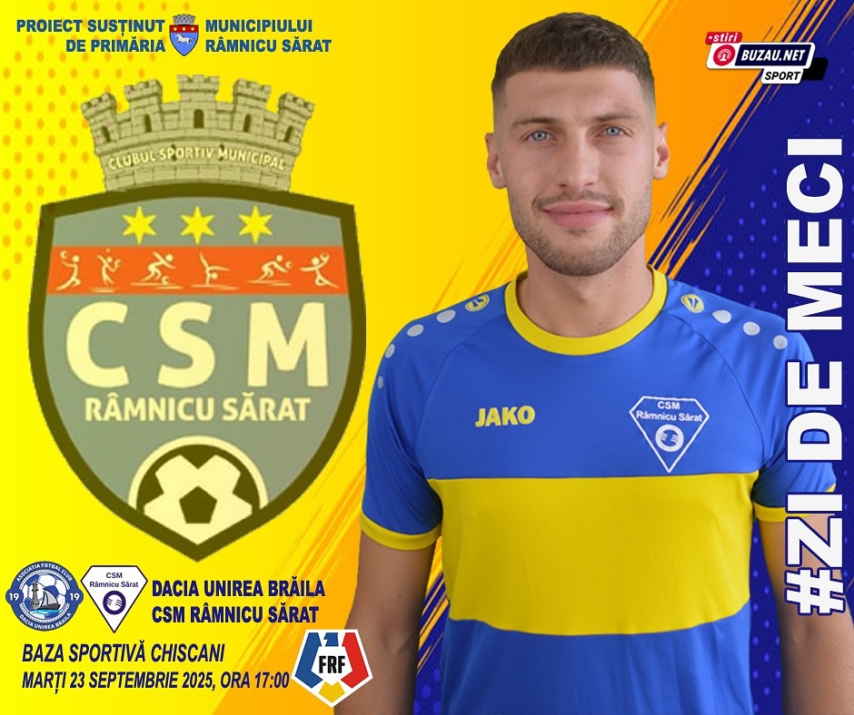 Vă așteptăm cu drag să fiți alături de echipa noastră CSM Râmnicu Sărat în confruntarea cu Dacia Unirea Brăila!