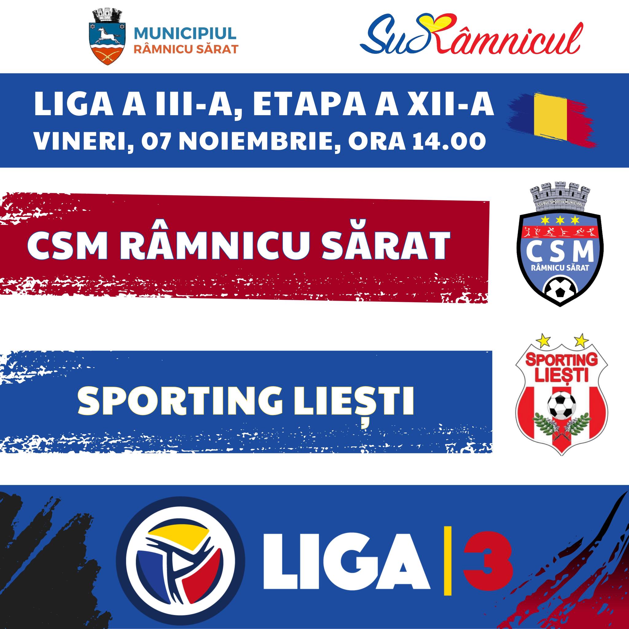 vă invităm cu drag vineri, 7 noiembrie 2025, ora 14:00, la stadionul municipal din Râmnicu Sărat, pentru a fi alături de CSM Râmnicu Sărat în confruntarea din Liga a III-a, etapa a XII-a, împotriva echipei Sporting Liești.