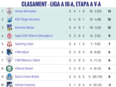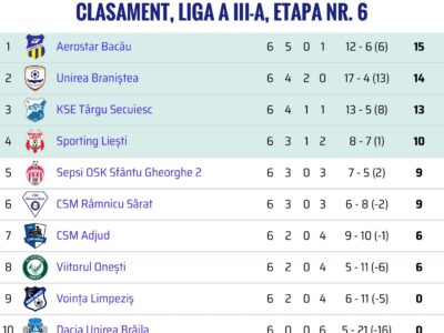 Clasamentul seriei a II-a a Ligii a III-a, după primele 6 etape!