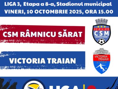 𝗖𝗦𝗠 𝗥𝗔̂𝗠𝗡𝗜𝗖𝗨 𝗦𝗔̆𝗥𝗔𝗧 – 𝗩𝗜𝗖𝗧𝗢𝗥𝗜𝗔 𝗧𝗥𝗔𝗜𝗔𝗡 Vă așteptăm vineri, 10 octombrie 2025, ora 15:00, pe Stadionul Municipal din Râmnicu Sărat, să fim... Detalii...